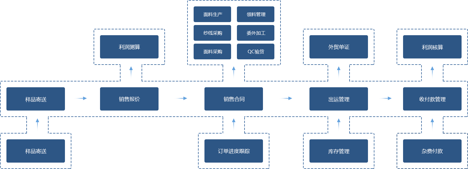 開(kāi)發(fā)、銷售、采購(gòu)、物流單證、庫(kù)存/財(cái)務(wù), 還可以生產(chǎn)管理等