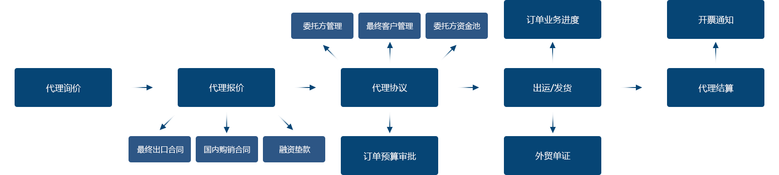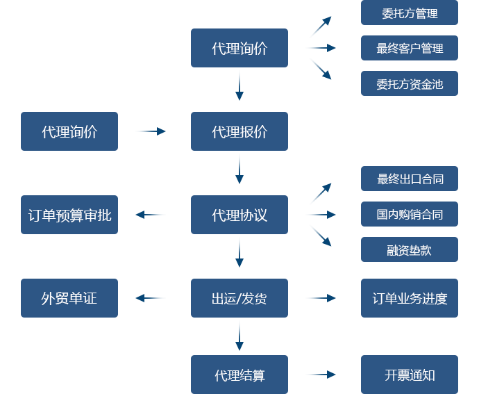 2.委托協(xié)議簽訂后,依據(jù)代理協(xié)議相關(guān)細節(jié)系統(tǒng)自動生成最終出口合同、 國內(nèi)購銷合同