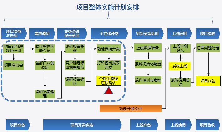 為保證用戶實施計劃的順利完成,艾諾科軟件公司將成立軟件實施項目小組,由專人協(xié)助ERP管理系統(tǒng)的實施,提供快速、有效的指導與服務(wù), 艾諾科軟件項目實施采用項目總監(jiān)負責制。項目組由項目總監(jiān)、項目經(jīng)理、實施咨詢顧問、技術(shù)咨詢顧問、開發(fā)工程師等組成。并要求客戶方建立相應的架構(gòu),共同組成項目實施小組。一個項目能否成功重點在于實施,實施過程的控制顯得尤為重要,項目的實施可以分為需求調(diào)研階段、需求調(diào)整階段、測試修改階段、安裝培訓階段、后續(xù)服務(wù)階段,每個階段都需要嚴格控制方能保證項目的成功。