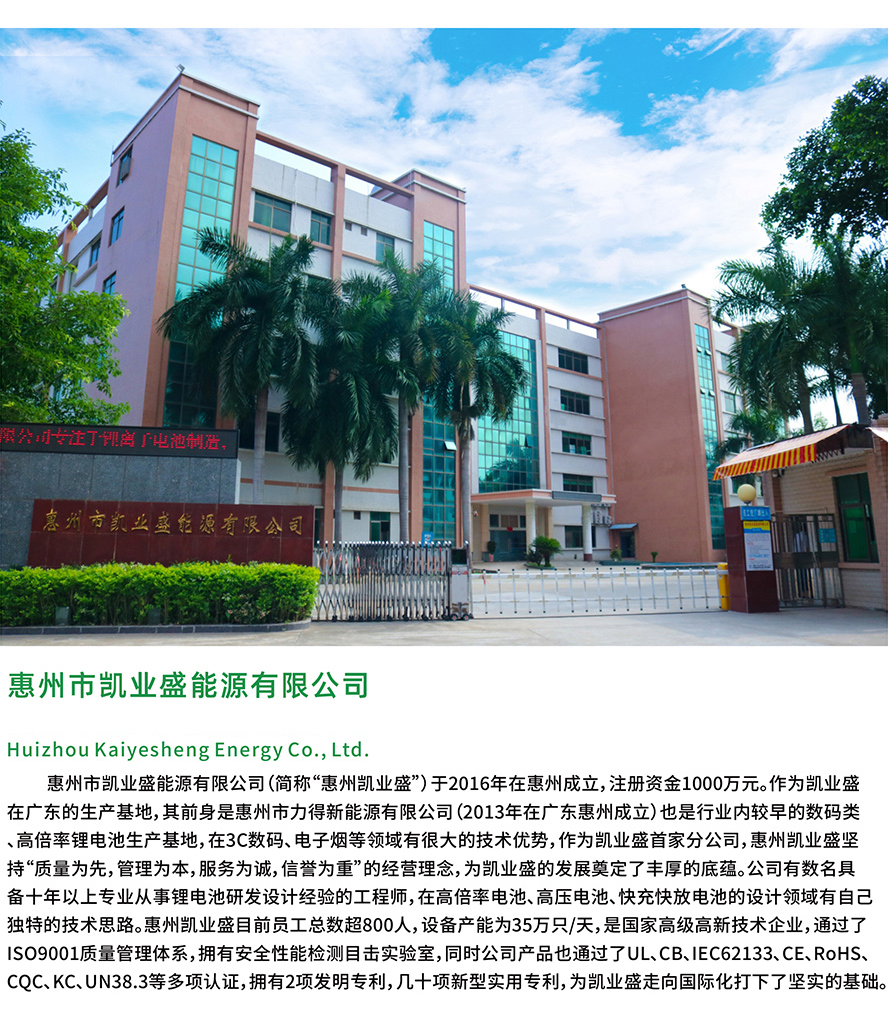 凱業(yè)盛能源是?家專(zhuān)業(yè)從事鋰離?電池研發(fā)、設(shè)計(jì)、?產(chǎn)和銷(xiāo)售和服務(wù)的綜合性鋰電池?產(chǎn)?家。公司最早于2010年深圳成?,2013年深圳市